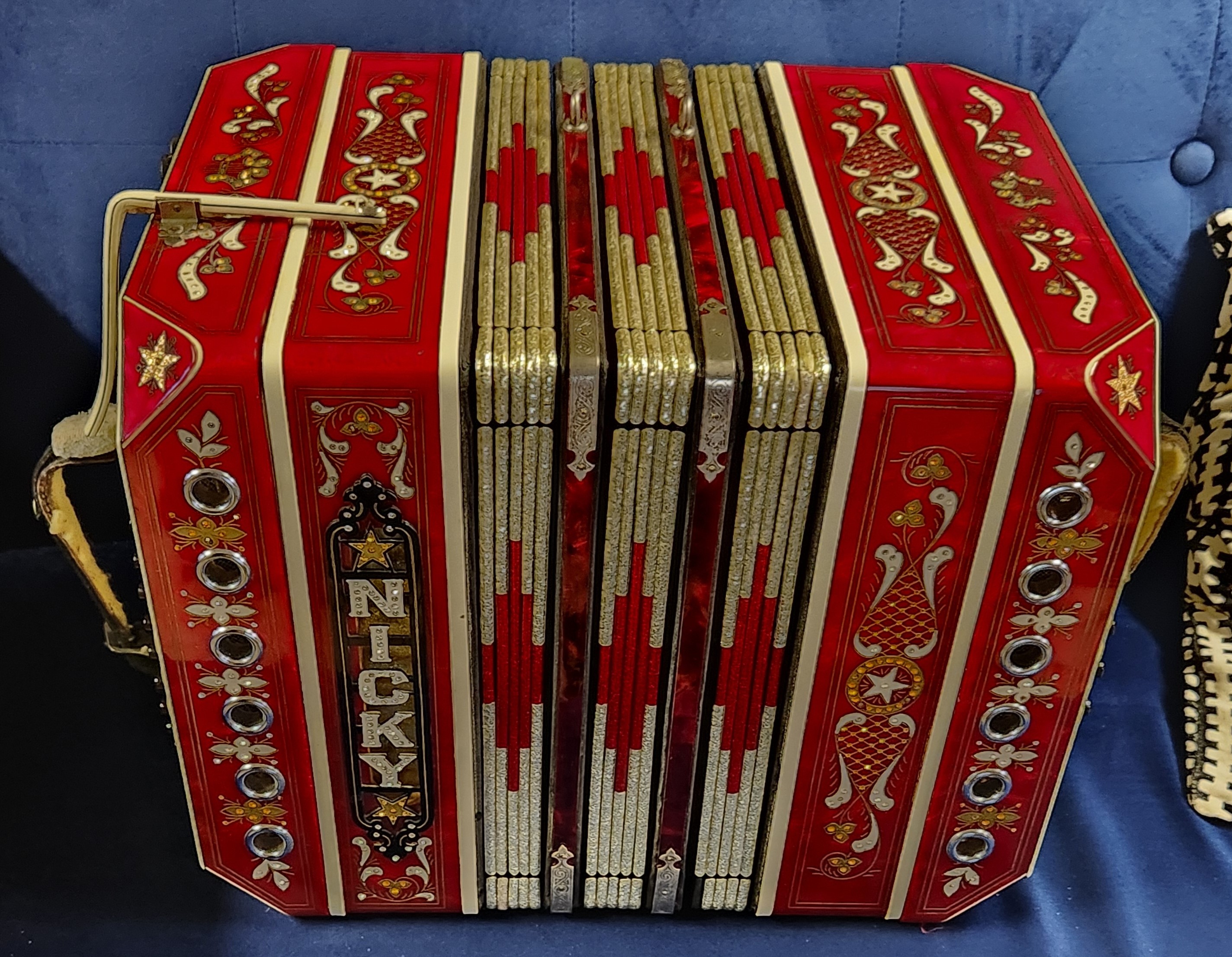 After the last Mind’s Ear LIVE broadcasts, we received numerous inquiries regarding the Chemnitzer Concertina that Chald was playing. That particular instrument is a rare Albert G. “NICKY” Nechanicky 130-Key Concertina. You can hear Chald playing this same concertina along with a variety of others on many programs in THE MIND’S EAR archive.